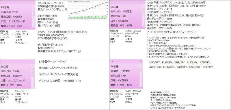 最低でも5〜10個の自動売買ソフトを常に動かして、その平均値で資産を増やして行きます。